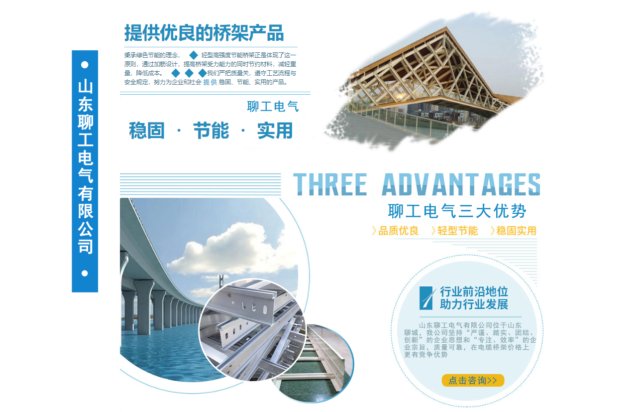 山東聊工電氣有限公司位于山東聊城,是一家銷售各類橋架的公司,公司主營鍍鋅防火噴塑橋架,鍍鋅防火電纜橋架 ,不銹鋼電纜橋架,熱浸鋅電纜橋架,鋁合金電纜橋架,熱鍍鋅電纜橋架,梯式電纜橋架等我公司堅(jiān)持“嚴(yán)謹(jǐn)、踏實(shí)、團(tuán)結(jié)、創(chuàng)新”的企業(yè)思想和“專注、效率”的企業(yè)宗旨,質(zhì)量可靠,在電纜橋架價(jià)格上更有競(jìng)爭(zhēng)優(yōu)勢(shì)。公司追求品質(zhì),配有研發(fā)人員,進(jìn)行產(chǎn)品的改革和創(chuàng)新,服務(wù)先進(jìn)走出了一條富有企業(yè)特色的可持續(xù)化發(fā)展之路! 我公司鄭重向你承諾:保證最好的質(zhì)量,以低的價(jià)格,完善的售后服務(wù),來答謝新老客戶。可提前電話聯(lián)系。...